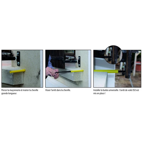 - Installez la butée universelle : l’arrêt de volet ISO est mis en place