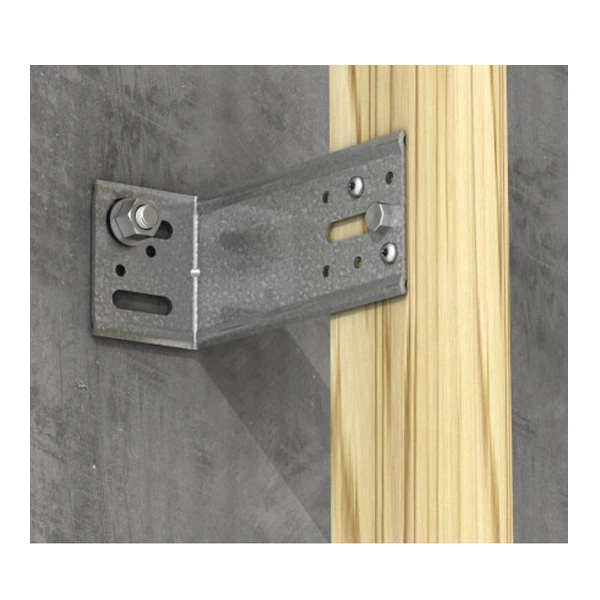 - Fixation des chevrons bois : la fixation du chevron sur l’équerre est réalisée par un tirefond de 8 mm de diamètre (placé dans le trou oblong Ø 8,5 x 40 mm central) et par l’ajout de 2 vis de 5 mm de diamètre assurant une anti-rotation du chevron.
