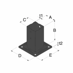 Pied De Poteau Carré Sur Platine Largeur 71 Mm Hauteur 150 Mm