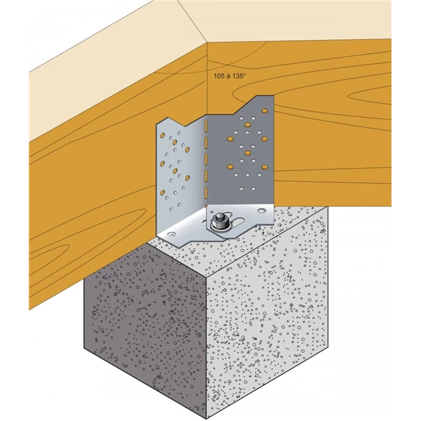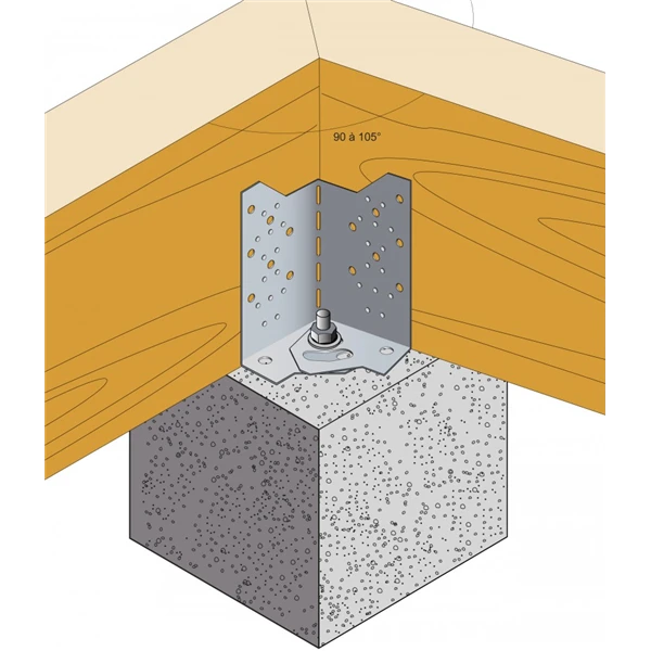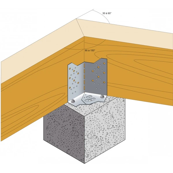 - Cette équerre permet la fixation de poutre bois (lamellé collé, bois massif…) de hauteur 235 à 310mm sur plots béton.
