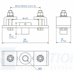 Support Enveloppant Acier Tige M20 – 8571 Mantion – Pour Rail 85×70 Mm