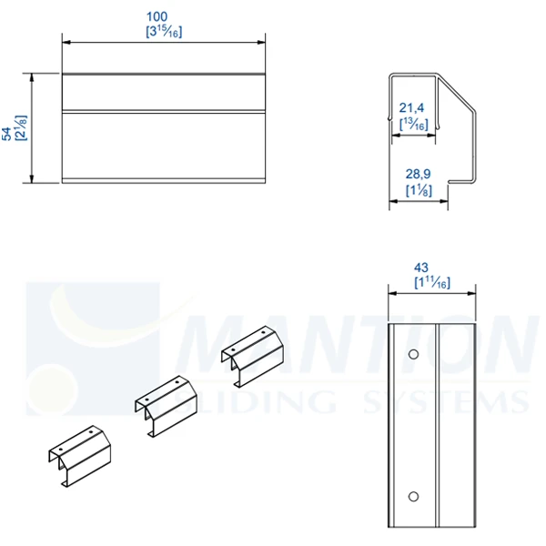 - Pour système coulissant droit de portes en bois avec bandeau.